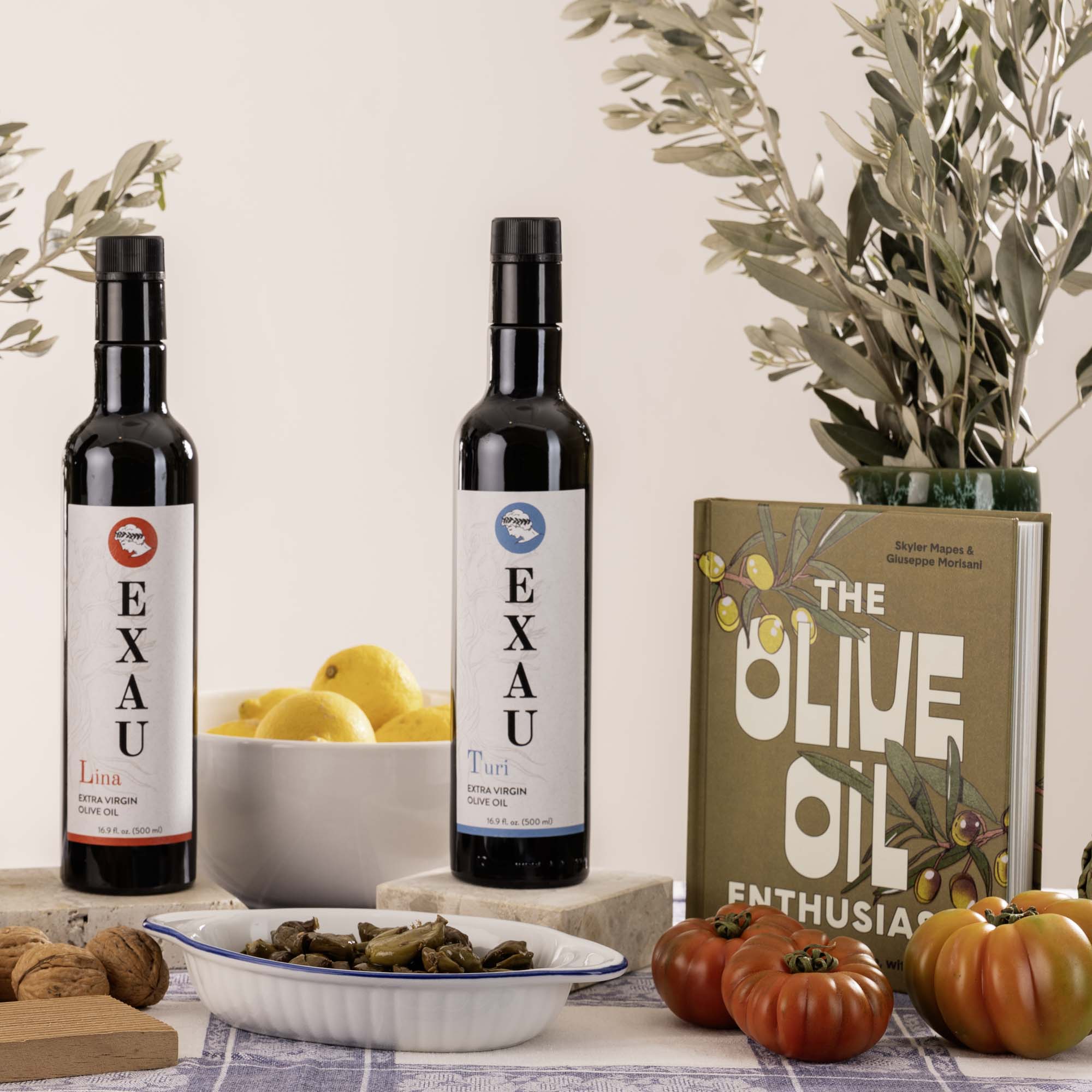 Extra virgin olive oil set with 1 Lina, 1 Turi, 1 copy of The Olive Oil Enthusiast